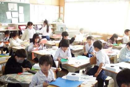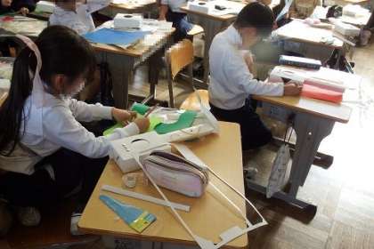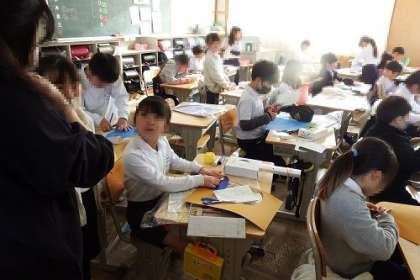 図工「音づくりフレンズ」では、楽器づくりに挑戦しています。実際に音までは難しいかもしれませんが、今にも音が聞こえてきそうな楽器になりそうです。