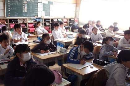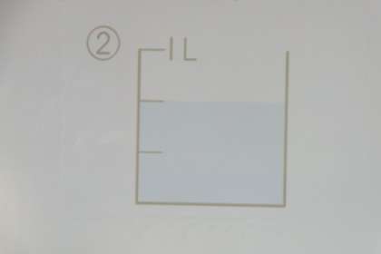 算数「分数」を学習しています。この日は、水のかさを分数で表すことを考えました。センチメートルやキロメートルの長さを分数で表すことも学習しました。