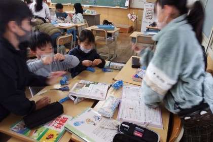 今まで学習してきた「電気の通り道」単元の終わりが近づいてきました。この日は、教科書の「たしかめよう」を行いながら、今までの振り返りをしました。