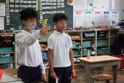 クリスマスが近づいてきています。音楽で「きよしこの夜」を学習しました。ベルを使っての演奏です。美しいベルの音が、教室に響いていました。