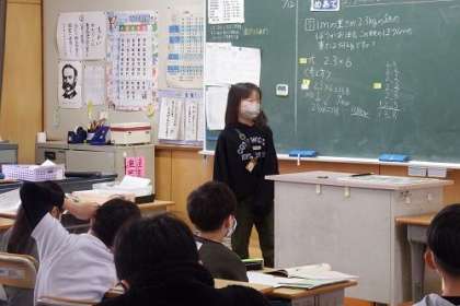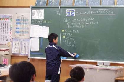 算数「小数のかけ算やわり算」の学習を進めています。この日は、整数のかけ算の筆算の仕方をもとに、小数のかけ算の筆算の仕方を考えました。「2.3×6」10倍して、その積を10で割ると答えが求められます。