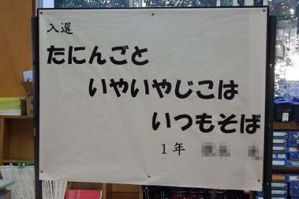 交通安全標語に全校で取り組みました。現在広場に、各学年の代表作品を展示しています。交通ルールを守り、事故が起きないように徹底していきたいと思います。