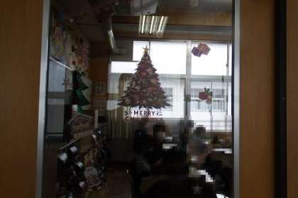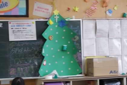 クリスマスに向けて、教室にはこんな掲示も。子どもたちの気持ちをやわらげ盛り上げてくれます。
