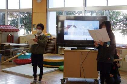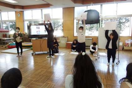 今日は、雪国のことを調べてきたグループが、みんなにクイズを出題しました。北海道の雪に関する問題など、みんな頭をひねって考えていました。楽しい時間をつくってくれてありがとう。