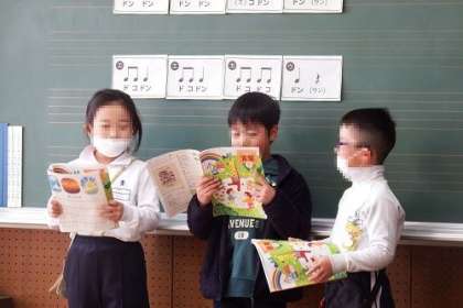 音楽で「この空とぼう」を合唱しました。前に出て堂々と歌を披露する子も。子どもたちの歌から、大空を駆け回るようなエネルギーを感じました。