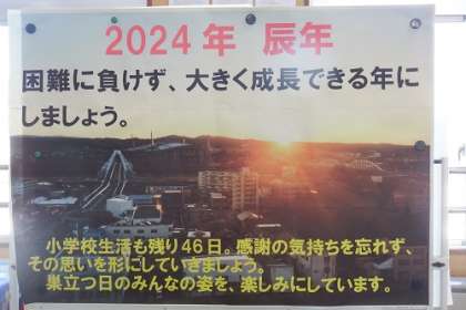 冬休みが明け、子どもたちに向け、先生たちのメッセージが、学年広場などに掲示されています。充実した楽しい3か月を過ごしてほしいです。