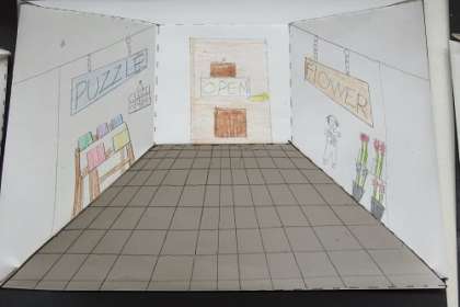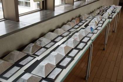 6年生が作成したトリックアートの作品を渡りに展示しています。一つ一つの作品をよく見ると、奥行きを感じ立体的に見えてきます。不思議です。