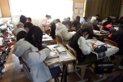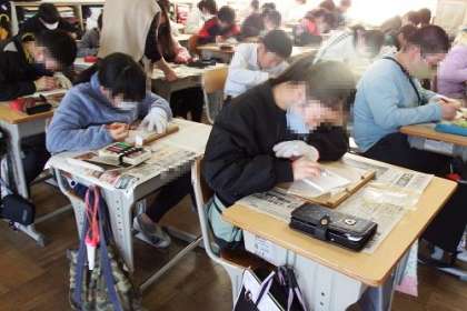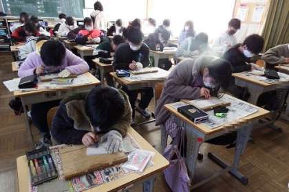 卒業制作であるオルゴール作りを進めています。この日は、オルゴールの天板のうきぼりを始めました。彫刻刀を使って、一堀一堀心を込めて。