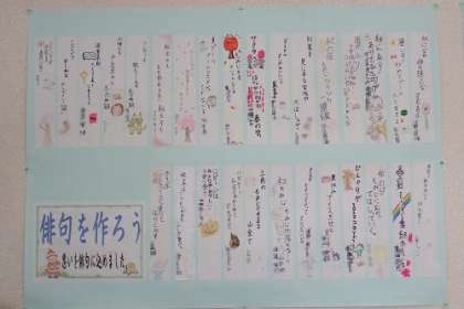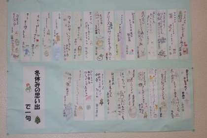 国語の学習で作った俳句を掲示しました。題して、「冬休みの思い出で一句」