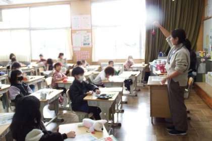 写真は、理科「じしゃくのふしぎ」の学習の様子です。極どうしの関係を使って、方位磁針の仕組みに迫りました。不思議を実感した時間でした。