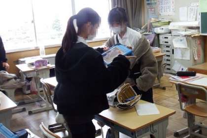 大谷選手から贈っていただいたグローブが、美山小学校に届きました。全校の子どもたちにお披露目すると、大きな歓声があがりました。右利き用、左利き用、小さめのグローブの3つです。現在、各学級を回っています。子どもたちは、手で持ってみたり、はめてみたり、写真を撮ったりしています。