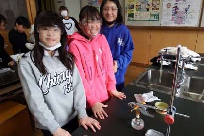 理科「もののあたたまり方」の学習では、ものによって温まり方の違いに着目します。この日は、水の温まり方を学習しました。水は熱せられたところが温まり、温度が高くなった水が上の方に動き、全体が温まっていく。