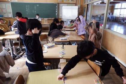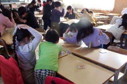 国語で、昔から伝わるいろいろな言い方を学習しています。今日は、かるたをみんなで楽しみました。読み上げられる声に続いて、子どもたちの歓声がわきあがっていました。