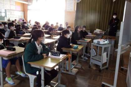 6年生は、あと2か月で中学生です。不安や疑問を感じている子どもたちに、中学生がこたえてくれました。学校生活を紹介するビデオを作り、美山小学校に送ってくれました。みんな興味津々。