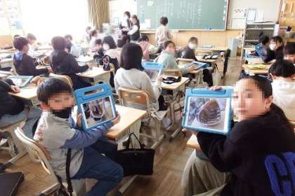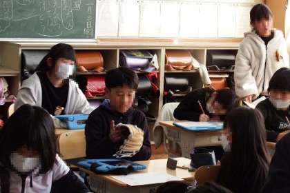 大谷選手のグローブが、各教室を回っています。中には、100枚近くの写真をとる子も。