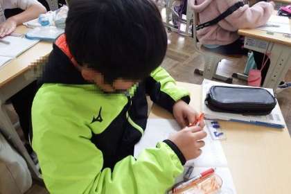 正六角形をコンパスを使ってかいてみました。では、なぜかけるのか、理由を考えることが今日の課題でした。正六角形の中に正三角形が6つできることがヒントになります。