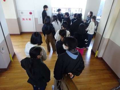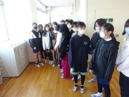 6年生が逢妻交流会での小中交流会に参加しました。逢妻中学校1年生と小清水小学校6年生と、中学校に関するクイズや合唱を楽しみました。中学校生による案内で中学校の校舎内を巡り、小学校にはない教室に興味をもったようです。