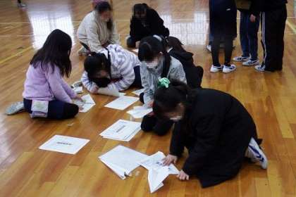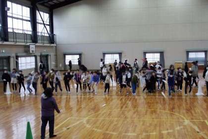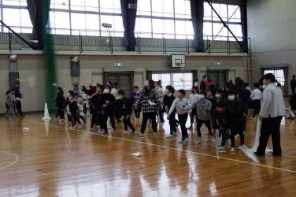 イベントママさんによる企画「紙飛行機をとばそう!」呼びかけの放送と同時に、多くの子どもたちが体育館へ。自分で作った紙飛行機を手に、何度も何度も飛ばしていました。