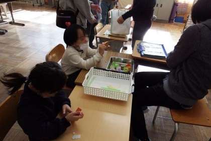 卒業と入学をお祝いする飾りづくりに取り組んでいます。花飾りをつくったり、輪飾りをつくったり。6年生と新1年生に向けて、心をこめて作っていきます。