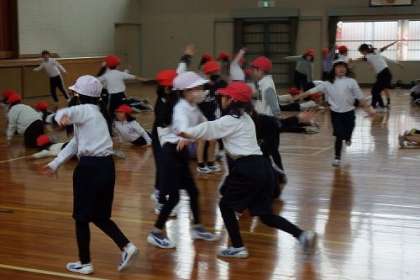 中京大学の皆様に講師としてお越しいただき、1・2年生がダンス講習会を実施しました。講師の先生の明るい声掛けと、大学生の皆さんのエネルギーに乗せられて、子どもたちも元気いっぱい活動をしました。海の生き物になって、体育館中を動き回った子どもたちでした。