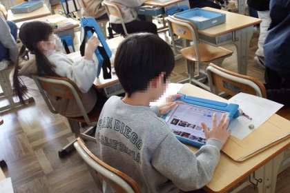 社会科で「市のうつりかわり」を学習しています。この日は、道具とくらしのうつりかわりを考えました。見たこともないような道具が登場し、どうやって使うのだろうと頭をひねっていました。