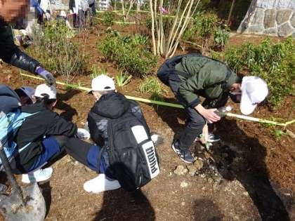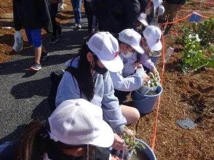来年度新しく開館する予定の豊田市美術館。学校で育てたどんぐりを、豊田市美術館の敷地に植樹しました。大きく育てと願いながら。子どもたちと同じように、このどんぐりも大きく成長していきます。