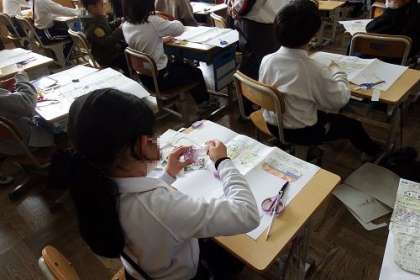 生活科「自分はっけん」のまとめを行っています。小さかった頃の私、こども園のころの私、そして、現在の私、未来の私へのメッセージ。今の私が未来の私へつながっていきます。