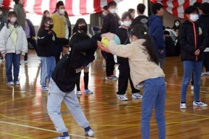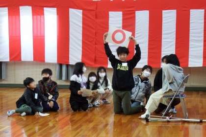 6年生を送る会を行いました。各学年ごとに、クイズに挑戦したり、ゲームを行ったり、ダンスをしたり、呼びかけをしたり、6年生と一緒に楽しい時間を過ごしました。6年生からは、素敵な歌のプレゼントがありました。写真は、4年生と6年生の送る会の様子です。