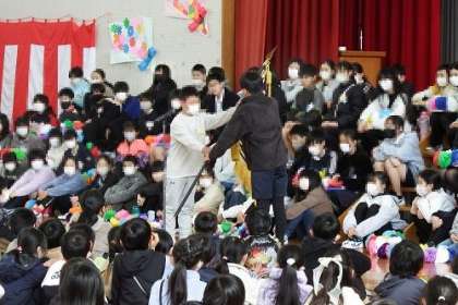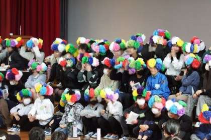 各学年の送る会が終わった後に、5年生の司会・運営のもと全校で送る会を行いました。お世話になった6年生へ花冠を作り、みんなで作ったプレゼントを贈りました。クイズをしたり、後期の引継ぎをしたり、エールを送ったり・・・。久しぶりに全校で歌う合唱は圧巻でした。とても素敵な送る会になりました。