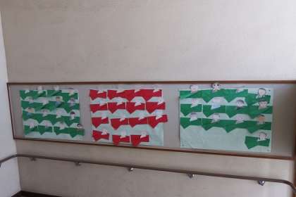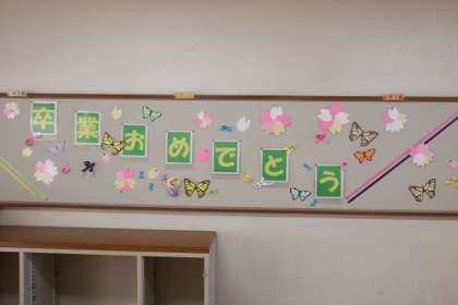 卒業をお祝いするため、校内の掲示物が整えられています。学校全体で、6年生が気持ちよく巣立っていけるように。