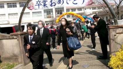 門送り。美山小学校を6年生が巣立っていきます。6年前、お家の人に手をひかれくぐっってきた門を、今は自分だけの足でくぐっていきます。卒業生に素敵な未来を。