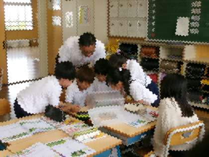 3年生は、理科でモンシロチョウを育てています。虫メガネでキャベツの葉についたたまごやよう虫を見つけて目を輝かせていました。