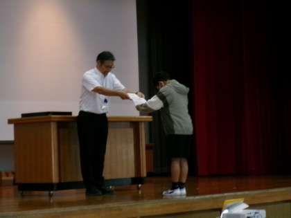 今年度から美山賞を10枚集めると大美山賞が授与されます。先日の全校集会で第1号の表彰が行われました。