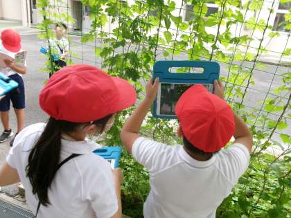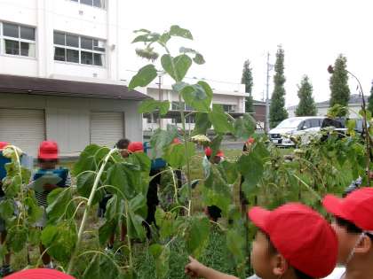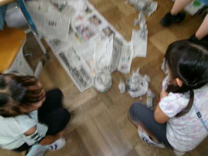 夏休み明けのゴーヤとヒマワリを観察しています。種はまだとれないかなと、じっくり観察していました。2年生の図工では、「新聞紙となかよし」と言って、新聞紙をちぎったり、丸めたりしながら、いろいろな形を作っていました。