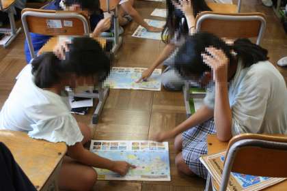 6年生の外国語科の授業では、いろいろなアクティビティーを通して、英語に慣れ親しみ、習得へとつなげます。また、タブレットを使って、個人に合った学習を進めることができます。5年生の掲示板に、素敵な掲示物を見つけました。