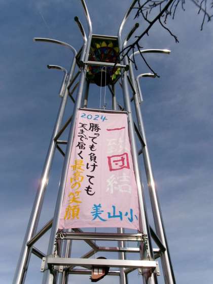 いよいよ明日は運動会です。運動会のテーマ「一致団結」の横断幕が掲げられました。どの学年もやる気満々です。6年生は、運動会準備に真剣に取り組む姿が頼もしかったです。