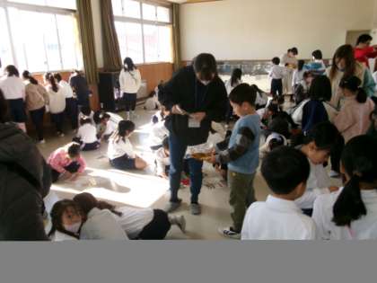 今日は、体力づくり週間の最終日でした。朝、やる気に満ちた子どもたちの熱気が、運動場の寒さを吹き飛ばしました。休み時間には、イベントママさん主催の折り紙教室が開催されました。シマエナガやクリスマスの小物など、楽しい作品を折り紙で完成させました。会場は、多くの子どもたちで賑わいました。1階昇降口クリスマスツリーの下に大きなプレゼントが登場。子どもたちは冬休みへの期待に胸を膨らませています。