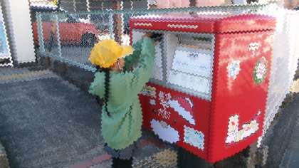 1年生は、授業ではがきの書き方を学び、家族に年賀状を書きました。今日は、その年賀状をもって近くの郵便局に行き、ポストに投函しました。2025年のお正月には、子どもたちの思いがたくさん詰まった年賀状が、子どもたちのお家に届くでしょう。年賀状をポストに入れる子どもたちは、とても嬉しそうでした。
