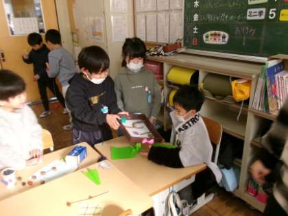 今日は、入学説明会がありました。4月から新1年生になる園児の皆さんと保護者の方が来校し、1年生との交流をしたり学校についての説明を聞いたりしました。1年生の児童は、おお兄さん、お姉さんとして優しく接する様子が見られました。