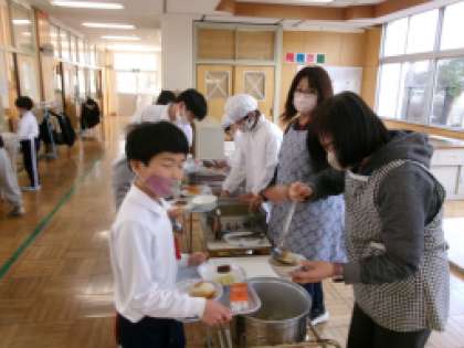 今年度も登校日が残り20日となりました。1年生の授業風景です。真剣に授業に向かう姿勢に成長を感じます。給食もたくさん食べるようになりました。今日のメニューは、リンゴパン。人気の献立です。