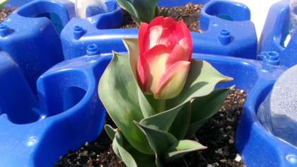 春の訪れを1年生が植えたチューリップの花が教えてくれています。