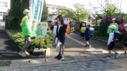 逢妻地区民生委員児童委員の方々が「愛の一声運動」と称して、児童の登校を見守り、あいさつをしてくれました。朝から気持ちのよいあいさつで迎えられ、子どもたちも笑顔になっていました。また民生委員の方から「あいさつが素敵だね」「会釈をしてくれる子もいてえらいね」とほめていただきました。