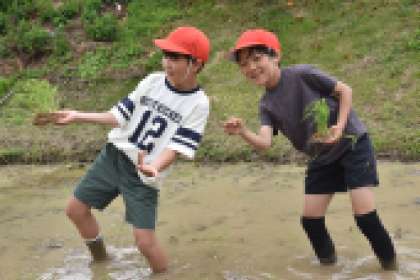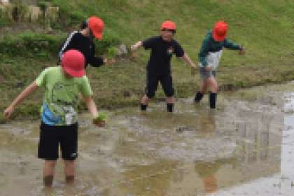 JAの方に教えていただきながら、田植えの体験をしました。田んぼに入るときも「わー」「きゃー」とか「冷たい」「ぬるい」「ぬるぬるする」と、思い思いの反応を口にしていました。泥の中を歩き、たくさんの苗を植えることを楽しみながら、時間をかけて植えることで、お米を食べられるありがたさを感じたことと思います。これから稲の成長が楽しみです。