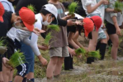 JAの方に教えていただきながら、田植えの体験をしました。田んぼに入るときも「わー」「きゃー」とか「冷たい」「ぬるい」「ぬるぬるする」と、思い思いの反応を口にしていました。泥の中を歩き、たくさんの苗を植えることを楽しみながら、時間をかけて植えることで、お米を食べられるありがたさを感じたことと思います。これから稲の成長が楽しみです。