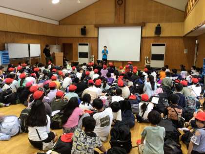 所員の方から施設の生活について説明を受けました。実行委員が司会進行役を務めました。
