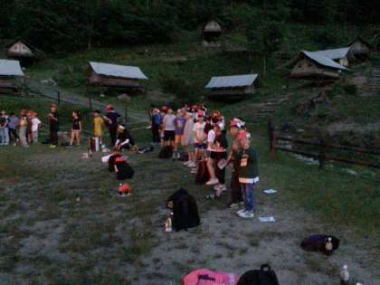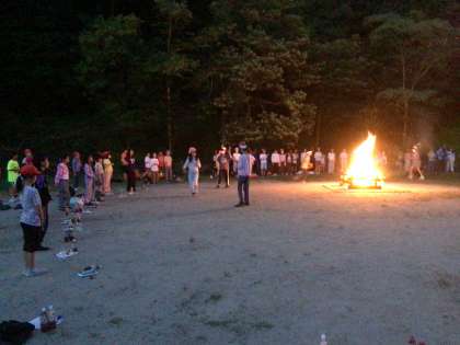 火を囲んで、みんなで楽しんでいます。最高の思い出です。