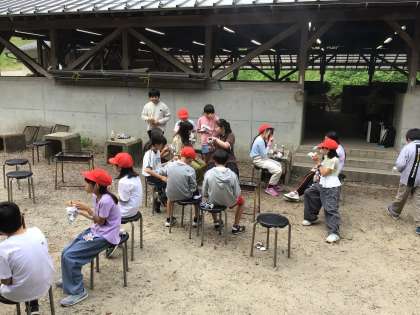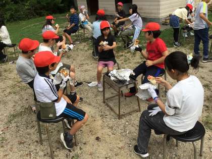 チーズとハム、ピザソース、いい味でした。班の仲間と食べる時間は思い出になりました。