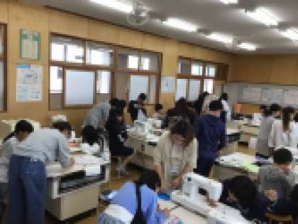 6年生がミシンを使って、ナップサック・トートバックを作っています。