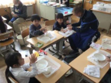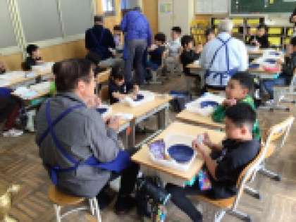 集中力を切らさず、形を整え、光るように、手のひらでやさしく土団子をこねています。ものづくりサポーターの方と会話をしながら楽しい時間になっています。