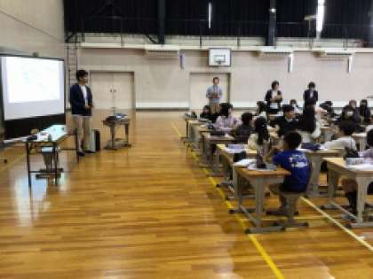 11月5日(水)に愛知県英語教育研究会が美山小学校で行われます 。5年生が外国語の授業を公開します。県内から約150名の先生方が参加されます。参加者が多いため、体育館で授業を行います。体育館での授業に慣れるために体育館で授業をしました。子どもが考えた「美山のすてき」を外国の方に発表するという授業を行う予定です。